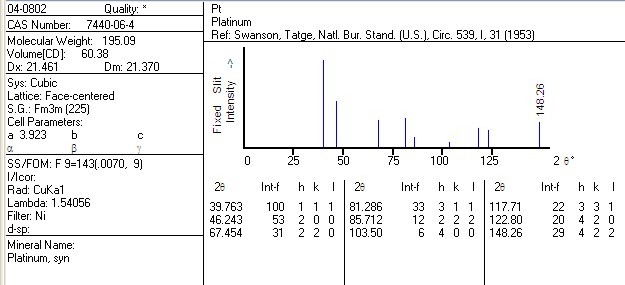 最近在合成铂晶体,照的TEM,量出了晶格间距,就是不知道对应的是哪个晶面?真诚的请教各位大侠指教!谢谢!!