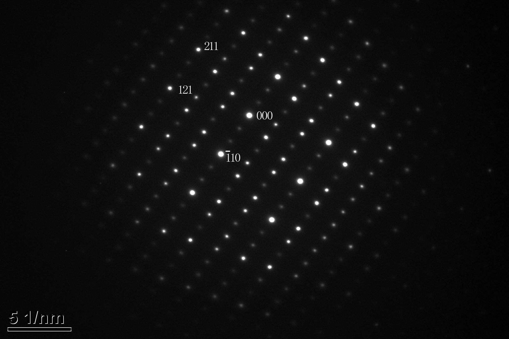 体心立方相的标定好了,晶带轴为-1-13. 衍射斑点为-110, 211,121