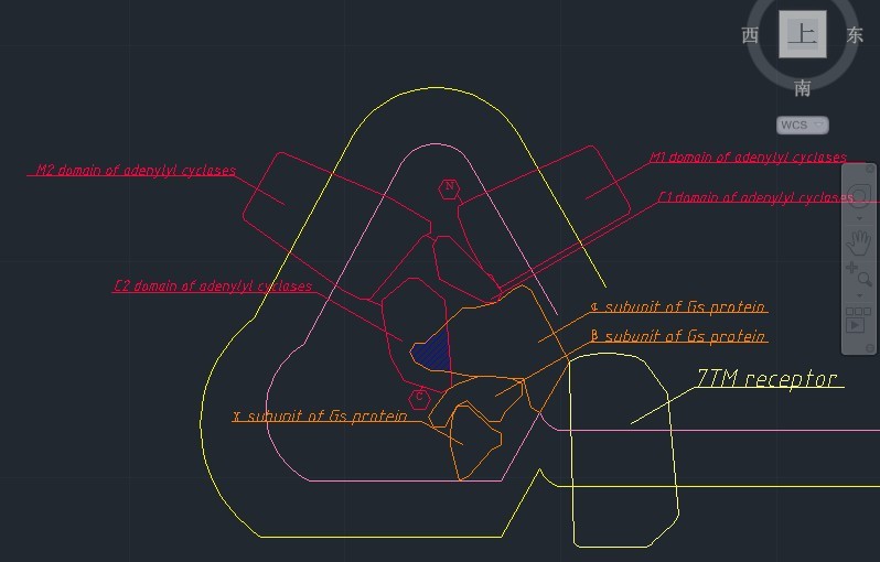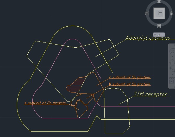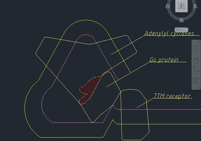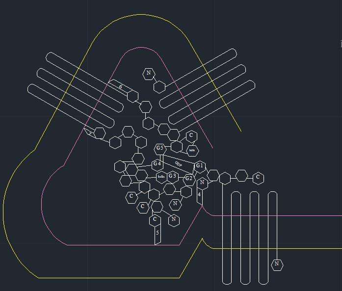 Thus, a new description pattern was designed. AutoCAD software was used to draw involved in signal transdruction. Here, the example of composite including 7TM receptor, Gs protein and adenylyl cyclases is as Figure 1