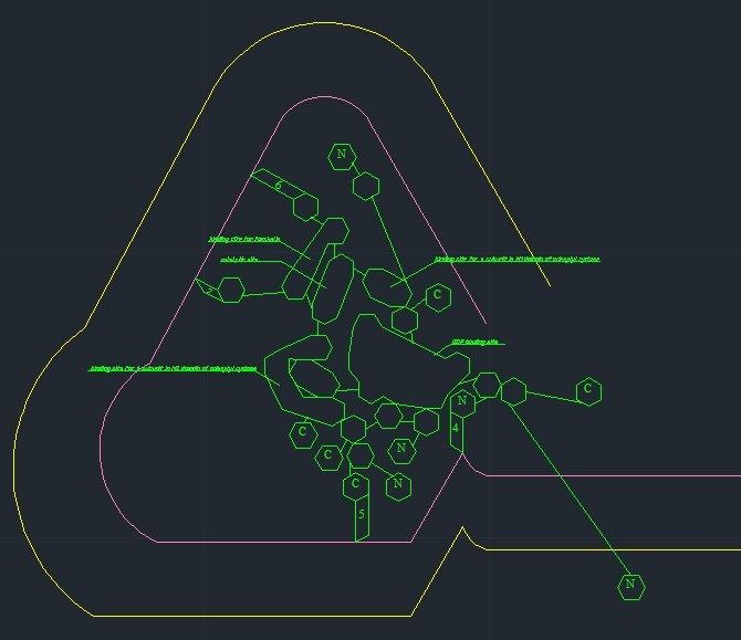 Through function in AutoCAD called “layer”, the complex was descriped in the levels by turns: motif, sub-region, region, domain, subunit and protein, as figure 2, figure 3, figure 4, figure 5, figure 6, and figure 7 show. If one structure doesn't exist or hasn’t been found in certern level, the structure loss location in this level is filled with the structure in upper level.