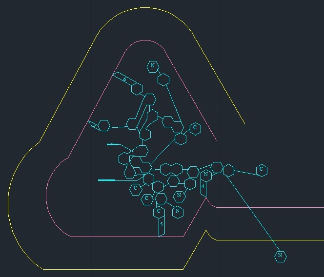 By means of AutoCAD, the complex was depicted in different layers according to different levels, and these several layers were combined into one picture axs figure 1 has shown.