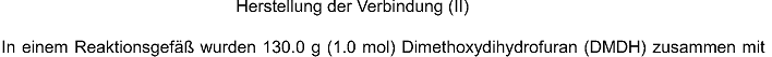 反应器中加入130克二甲氧基二氢呋喃,205克碳酸钠和400毫升乙二醇,冷至5摄氏度。1小时内通入氯气178克,氯气定量通完后5摄氏度下继续搅拌60分钟。然后升至室温继续搅拌2小时。 有机相用无水硫酸钠干燥,然后旋转蒸发去除溶剂。得到的151克清澈的琥珀色的剩余物,气相检测纯度64%,相当于收率为42%,进一步利用二氧化硅为填料的液相色谱提纯,甲基叔丁基醚(MTBE)为流动相,可得纯度为80%,气象色谱检测。