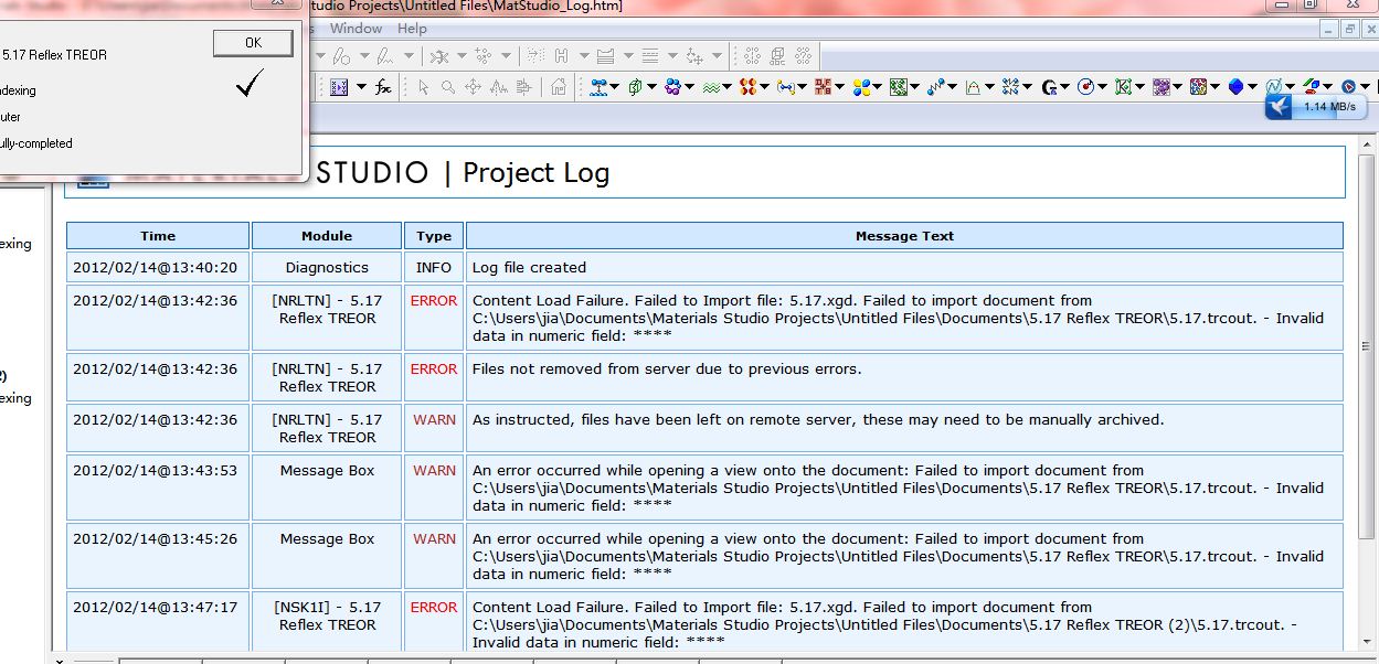 MS 5.5 进行Reflex 点了Pattern indexing 后出现错误如图,是什么原因?怎么解决呢? [ Last edited by jindeng0911 on 2012-2-14 at 14:00 ] |