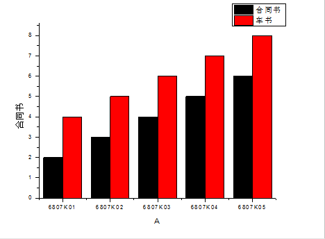 请问用origin怎么把两个柱状图分开成右边excel那个,谢谢了
