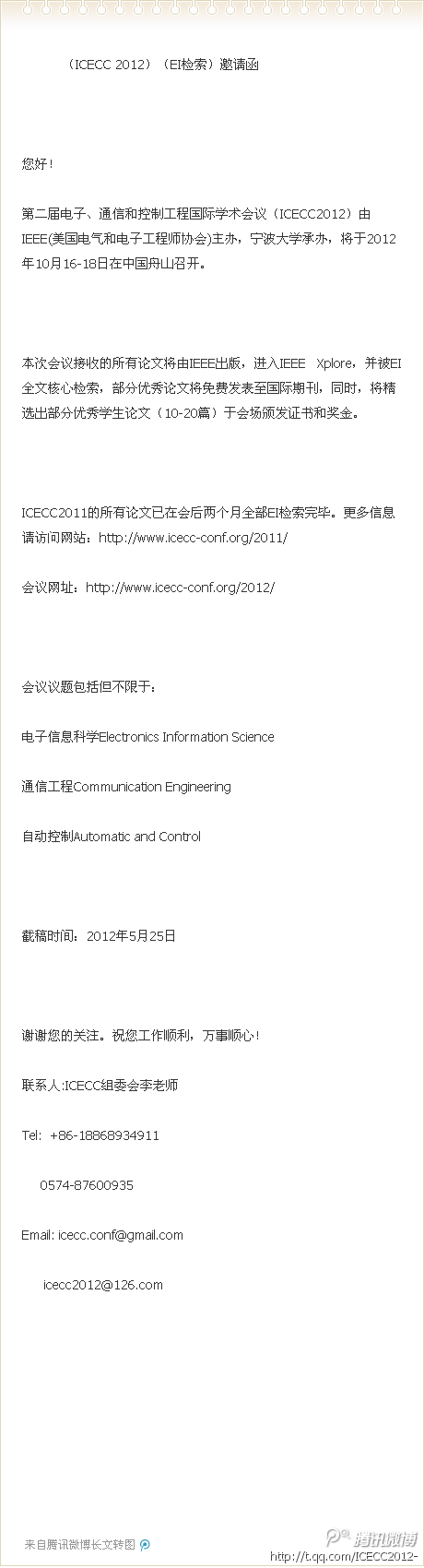关于icecc2012 电子、通信和控制工程投稿的、 已有1人参与