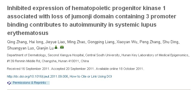 中南大学湘雅二医院 陆前进课题组发表的论文,
