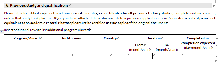 申请昆士兰大学博士 表格怎么填啊?