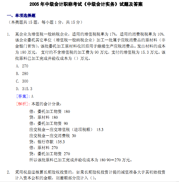 【真题资源】2005-2011年中级会计职称考试《中级会计实务》试题及答案