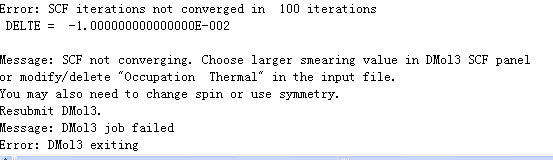 小弟根据文献构建了NiMoS晶体结构(如图),但在用dmol3进行结构优化的时候总失败,在outmol文件中找到的原因如图所示,请问各位大侠问什么会出现这个状况,该如何解决.... 晶体模型 错误原因 |