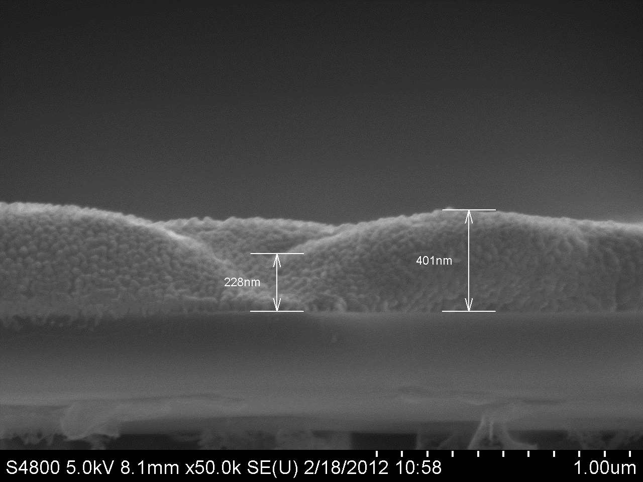 【求助】用磁控溅射长的铜膜,1000度在氢气中保温30分钟快冷的扫描图,本来是260nm,处理完变厚了,大概有四五百nm,表面不平整了,哪位高人能指教一下 高温处理后有些空洞 一颗颗粒状结构 厚度比加热前厚了 |