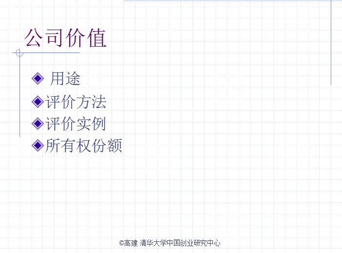 本内容由用户自主发布,如果其内容涉及到知识产权问题,其责任在于用户本人,如对版权有异议,请联系邮箱:xiaomuchong@tal.com - 附件 1 : 公司价值、融资和创业投资(清华大学).ppt