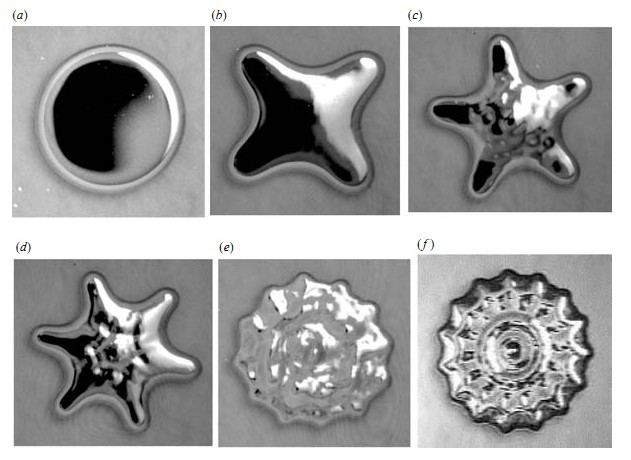 重发一下,另一帖见http://muchong.com/bbs/viewthread.php?tid=4134886&authorid=569451 Free-surface horizontal waves generated by low-frequency alternating magnetic fields By Y. FAUTRELLE, J. ETAY AND S. DAUGAN 作者简介:法国 SIMAP-EPM 实验室主任,在电磁冶金、电磁场下材料加工领域(EPM)的大牛。文章简介: 金属液滴(实验中用的水银液滴)在低频交变磁场下自由表面水平振荡行为,只要通过调整适当的电流和频率,一定大小的水银滴就能振出非常规则的正三角形、正方形,正五角星、正六边形等。 b、精读评析: 本文中的金属液滴是在交变磁场作用下产生洛伦兹力这样的体积力,金属液滴在洛伦兹力、重力以及表面张力的共同作用,由于磁场的特性洛伦兹力的大小和方向也是不断变化的,这样液滴就会发生振荡,符合其本征频率和液滴表面张力、半径、密度以及所形成的多边形变数一个特定的数学表达式(文献公式2),这样达到公式的参数值就可以抖动出预想的n变形来,保持这个参数不变会以一定的周期不断的抖动下去。 c、精读感悟:(就文献阐述自己的心得体会,或可以分享自己的科研经验) 之所以选这篇文章,是感觉特别有趣,原来实验也可以这么有趣,况且做这一工作的还是国际金属材料领域的大牛。其实这种研究表面上看能有什么实际用处呢,就是为了都金属液滴好玩吗,当然并不是这样的,这最开始是在金属凝固领域的电磁悬浮熔炼中发现磁场对金属熔体的力的作用明显非常受制于重力,这是Yves等人就想那要是减小重力会怎么样呢,减小重力的方法就是把熔体变少,最后成为了液滴,这样磁力(洛伦兹力)就可以和重力分庭抗争 d、附上文献: 欢迎有兴趣的虫友来讨论! 水银滴形态[ Last edited by youmengren on 2012-3-18 at 16:53 ] |