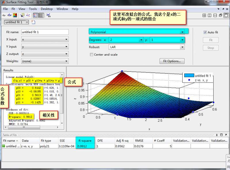 如附件所示,在origin中绘制出3D wire frame,但是我想拟合出该表面的一个计算公式,我想在matlab中应当可以实现,由于没有用过该软件,所以向各位求助 数据见附件 谢谢各位了 |