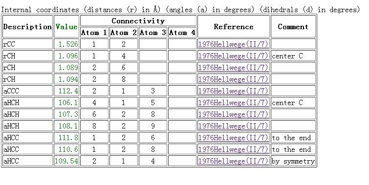 各位朋友,请教一下丙烷的结构参数(键长与键角)?建立计算模型时需要使用。