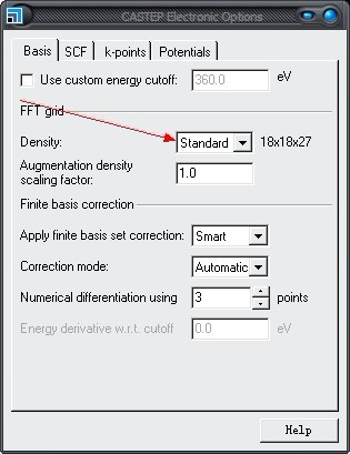 FFT格子维度是由晶格尺寸及截断能决定的,在MS中其设置位于CASTEP Calculation/electonic/More/Basis/FFT grid中 参看帖子:http://muchong.com/html/200910/1613988.html |
