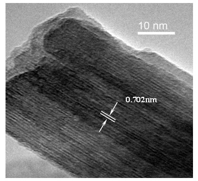 刚投了一篇关于alfa-MnO2的文章,返回的审稿意见要求标注HRTEM的选区衍射,这个怎么标注啊? 现在去看理论,时间上来不及了,月底前要返回修改稿。 各位帮帮忙吧!谢谢! 下面是XRD图(JCPDS 44-0141)和HRTEM图,不是很清楚。 |