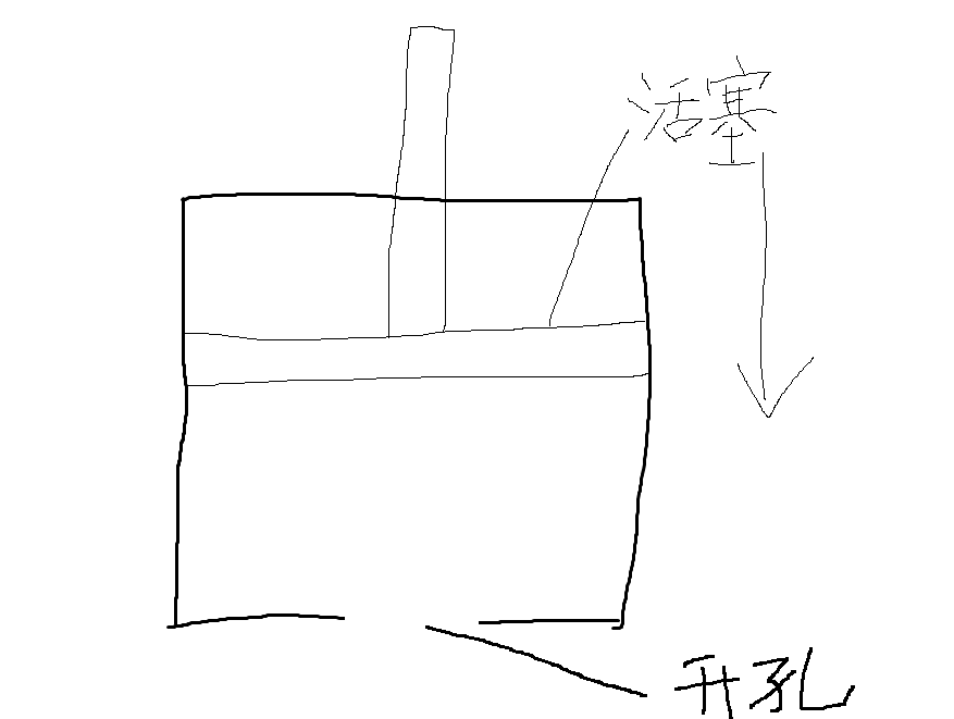 如图 气缸放置于空气中,其底部开有一个小孔 ,活塞以一定初速度向下压缩气体,问活塞的受力变化以及气缸中气体压强的变化,小孔处气体流量的变化。不计摩擦。