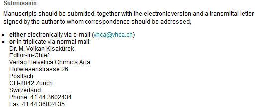 请教投稿HELVETICA CHIMICA ACTA 的问题