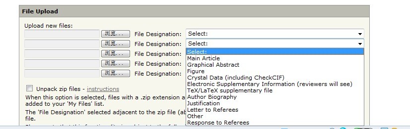 有在RSC期刊上投稿过的朋友,我想问个问题,就是最后上传手稿,图片等等的时候会出现这么一个选择,谁能给我分享一下,其他这些都是个啥意思啊 第一个就是手稿 第二个是图片摘要 第三个是图片 第四个是晶体资料 第五个是支撑材料 第六个不知道 希望可以解释一下@@@ 第七个作者简介 这个还要上传吗? 第八个不知道 第九个给审稿人的信 这个要必须写吗? 第十一个 对审稿人的回答 这个是做什么的? |