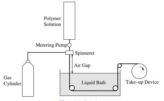 请问大家所用中空纤维纺丝机所用计量泵的厂家,型号等计量参数。 即图中的Metering Pump。 Figure.Schematic drawing of a typical solution dry-wet hollow fiber spinning process. |