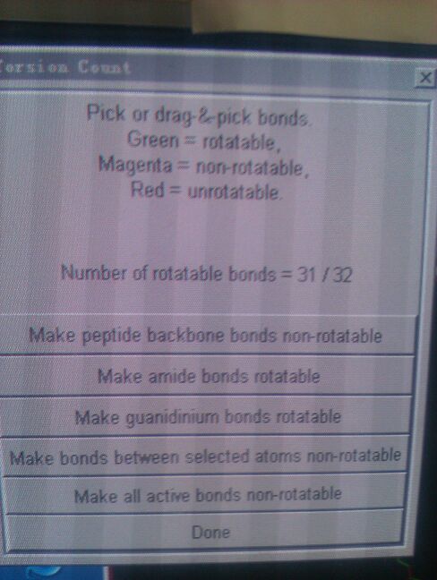 这是我的对接结果 ,同学的其他药物对接结果都好的,能量也比较低 构像数也多 我不知道为什么的能量不是很低 更奇怪的是 构像数最多的也只要两个 请大家帮我分析分析吧 我真的是焦头烂额了 可旋转是键数量 [ Last edited by fight1man on 2012-3-2 at 17:37 ] |