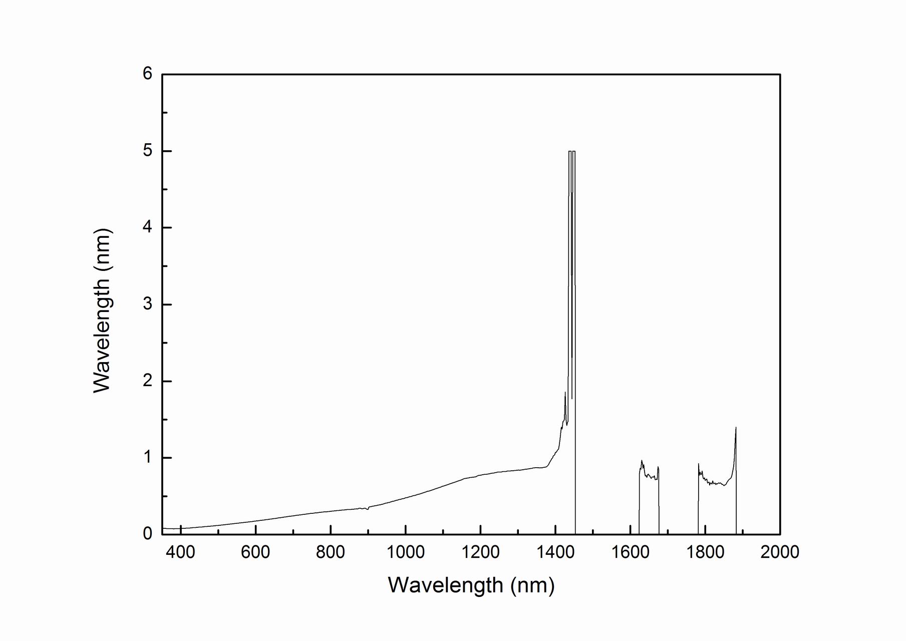 这个图为什么到1400nm以后数据就不准了呢,实际上应该是在1400纳米以后吸收继续增大,然后出现个峰,在下来,吸收应该大于0,为什么会后面乱七八糟的。我问了下别人,他们说仪器好像没什么问题。