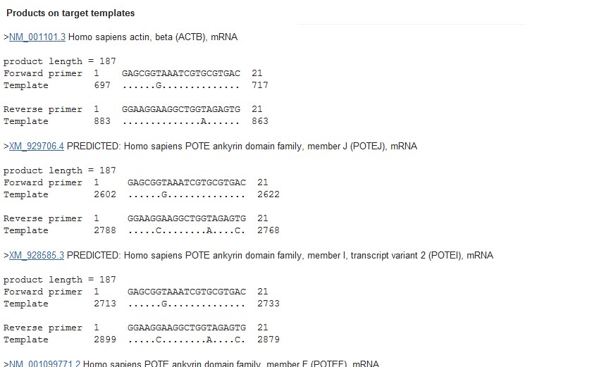 ACTB expression might be slightly increased in cancer cells. And for your question, i would recommend to check whether they are the same one but with different names. If not same, check about the mRNA expression of ACTB and POTE in cells. Last, you have some problem with your designed primers. PCR is very sensitive, once you design a specific primer against ACTB (100% complementary and control the length to make the primer is specifically designed)gene and well control of the PCR condition, there really should not have non specific amplification. |
