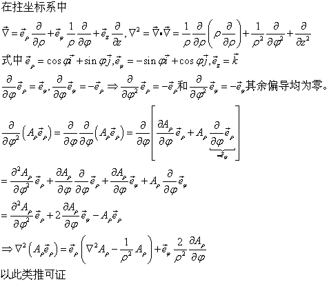 ¾ßÌå´íû´íÎÒû×Ðϸ¿´¡£ Äã¿ÉÒԲο¼ÏÂÑîÈå¹óµÄ¡¶µç´Å³¡Óëµç´Å²¨¡·ÖеÄʸÁ¿·ÖÎö Óиö¸ÅÄîÊDZØÐëÃ÷È·µÄ£ºÊ¸Á¿ÔËËãµÄÀÆÕÀ˹Ëã·ûÊÇÒ»¸öʸÁ¿µÄÉ¢¶ÈÔÙ×öÌݶÈÔËË㣬ͬʱעÒâÕâÀïµÄÉ¢¶ÈºÍÌݶÈÔËËã±ØÐëÓÃÖù×ø±êϵϵġ£Öù×ø±êºÍÖ±½Ç×ø±êÖ®¼äÓиö¶ÈÁ¿ÏµÊýµÄ¹ØÏµ£¬Ò»°ãµÄÕý½»×ø±êϵ¶¼»á½²µ½µÄ¡£Äã¿ÉÒÔÈ¥·Ï¸ղÅÎÒ˵µÄÄǸöÊé¡£ |