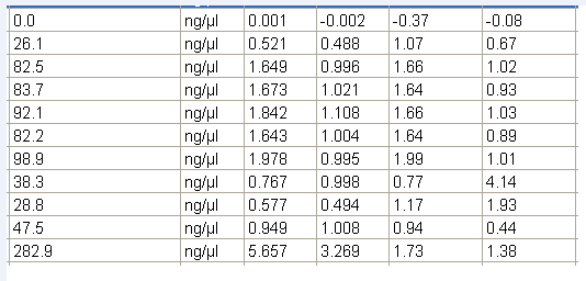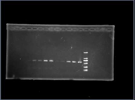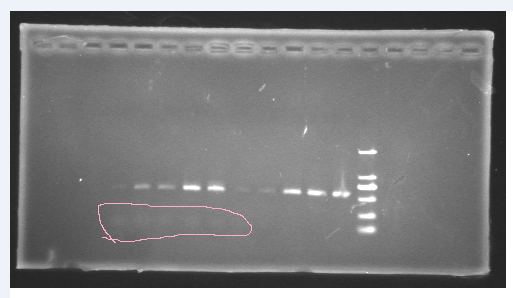 | 你没有标明Marker的大小,不过底下的模糊条带应该是引物二聚体,明暗当然和PCR产物浓度有关了,之所以测出来没太大区别就是因为底下的引物二聚体造成的。至于每管都不一样,可能是PCR仪加热降温不一致造成的, |
