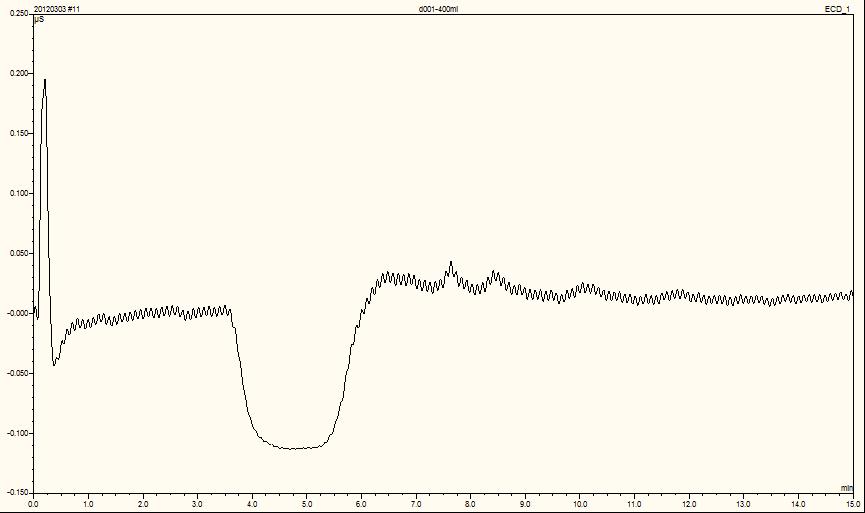1、流动相基本上是两天一配制,背景显示的在0.4微西门子左右。