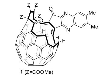 我看到JACS上的一篇文章作图很漂亮,画的是一个富勒烯衍生物,图很清晰,而且边缘黑体也很合适,但是我试用了MS, VMD,还是做不出来这样的图示,哪位高手可以指点一下,是用chemdrow画的吗?求指教!不胜感激! 如下图:文章来自:J. AM. CHEM. SOC. 2009, 131, 3392–3395 |