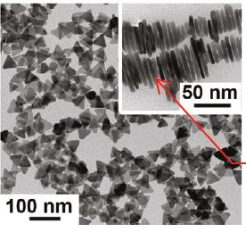 想咨询下各位,图中为银的三角板,但是右上角那种堆积起来的图是怎么测到的,应该不是样品制成这样的,请问TEM中有什么方法可以测到这种板的厚度吗,或是如何制样能得到?