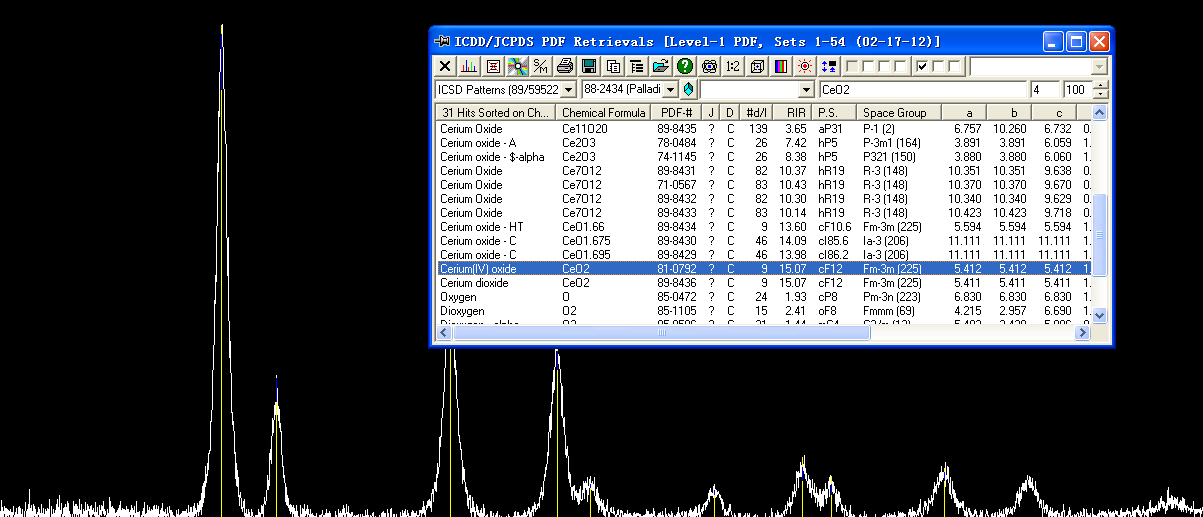 TEM下看到了大量指纹样的晶格条纹,怀疑是铈氧化物和锆氧化物,请问怎么区分和定性呢?哪里有图谱参照吗?
