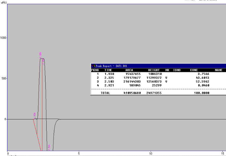 我是HPLC的小菜,在分析一种甜菜碱型单体(NN-二甲基甲基烯丙基乙酯+氯乙酸的产物)时,水溶液浓度为0.1%,谱图如下: 色谱柱子为ODS 150*4.6 流动相用过100%甲醇,甲醇:水=50:50\80:20,但是都没有出现单体的峰。 后来改用相应的流动相配制谱图依旧,没有明显变化。 |