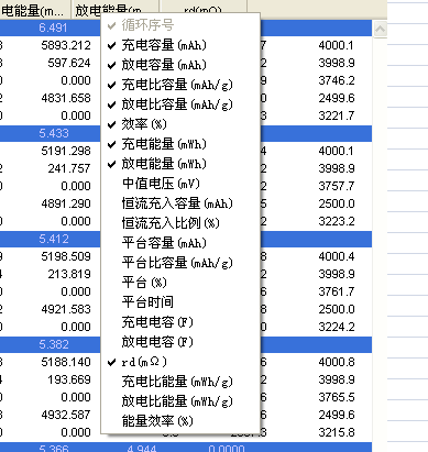 在右边的数据上点右键,有个“活性物质质量”设置,输入你的活性物质的质量即可。数据就会显示你的比容量。