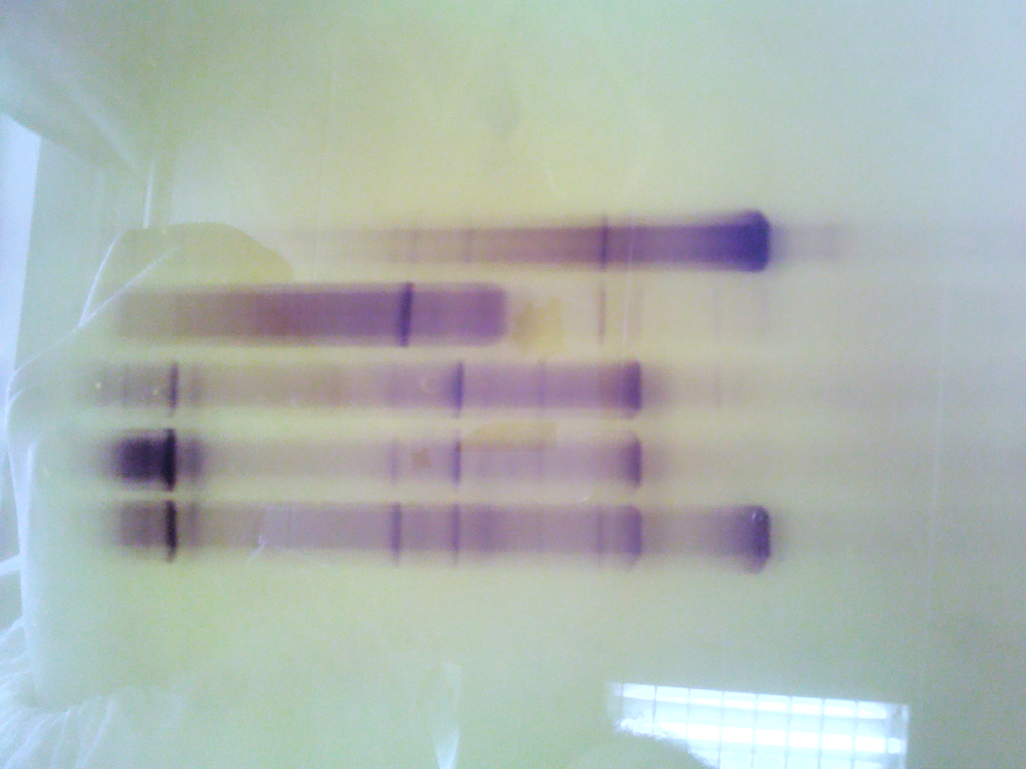 如题。 我想针对不同的单克隆的DGGE条带的位置,来制作一个属于自己的ladder或者marker。然后,作为标准,用其他样品来与之对比。 现在遇到的问题是:单一克隆(单克隆)的DGGE泳道中,并非单一的条带。而是多条条带,没有主次之分。 我的方法:提取质粒,然后,直接用968GC-1401这对引物直接扩增,然后,PCR产物回收上样,跑DGGE。 如何避免这种多条带的情况?困扰我很久了。 |