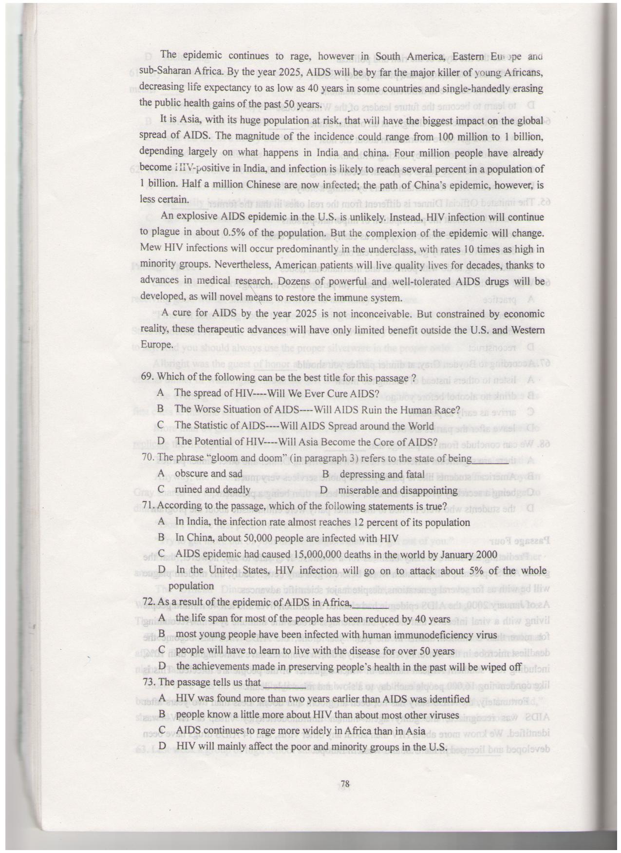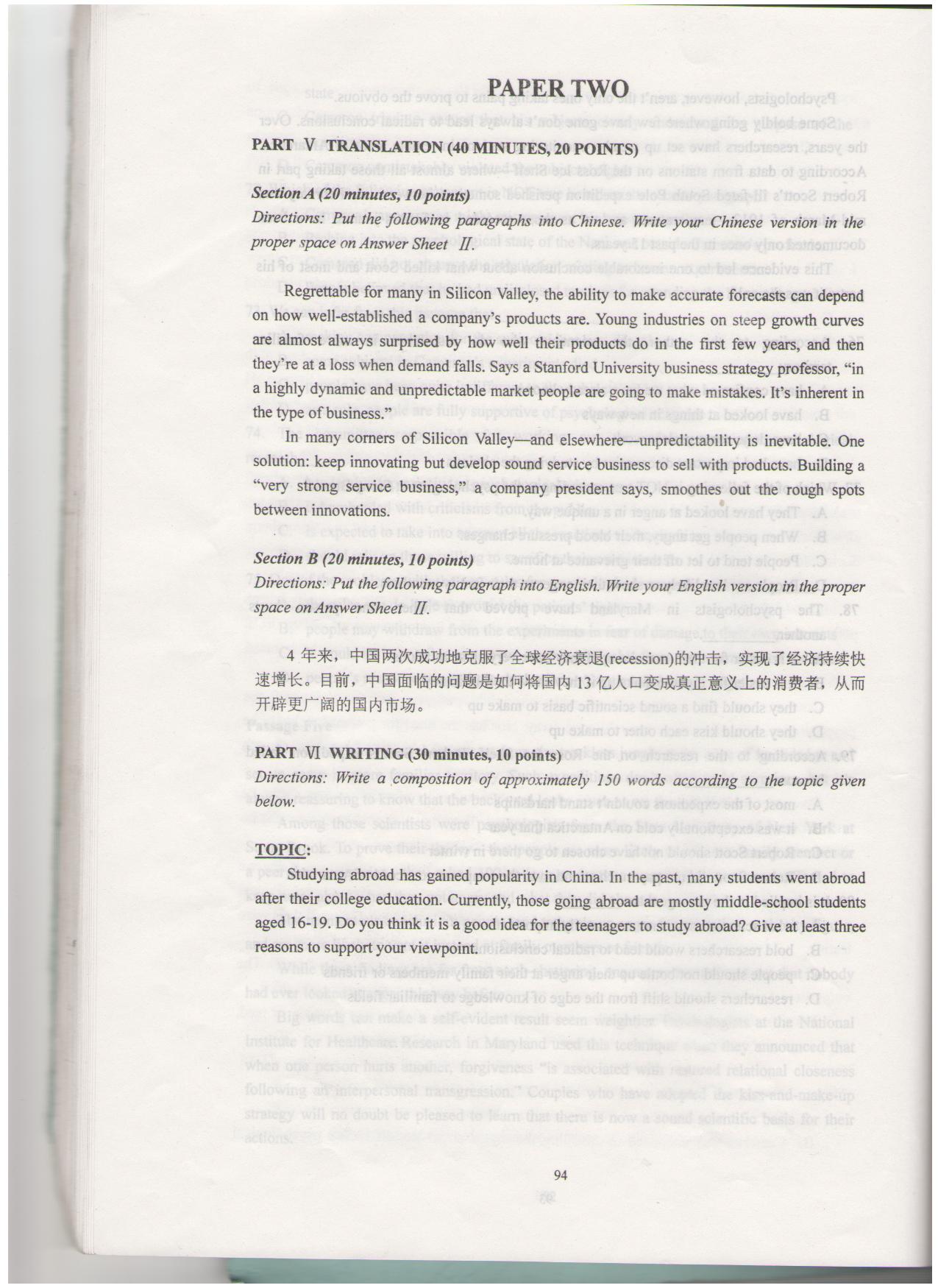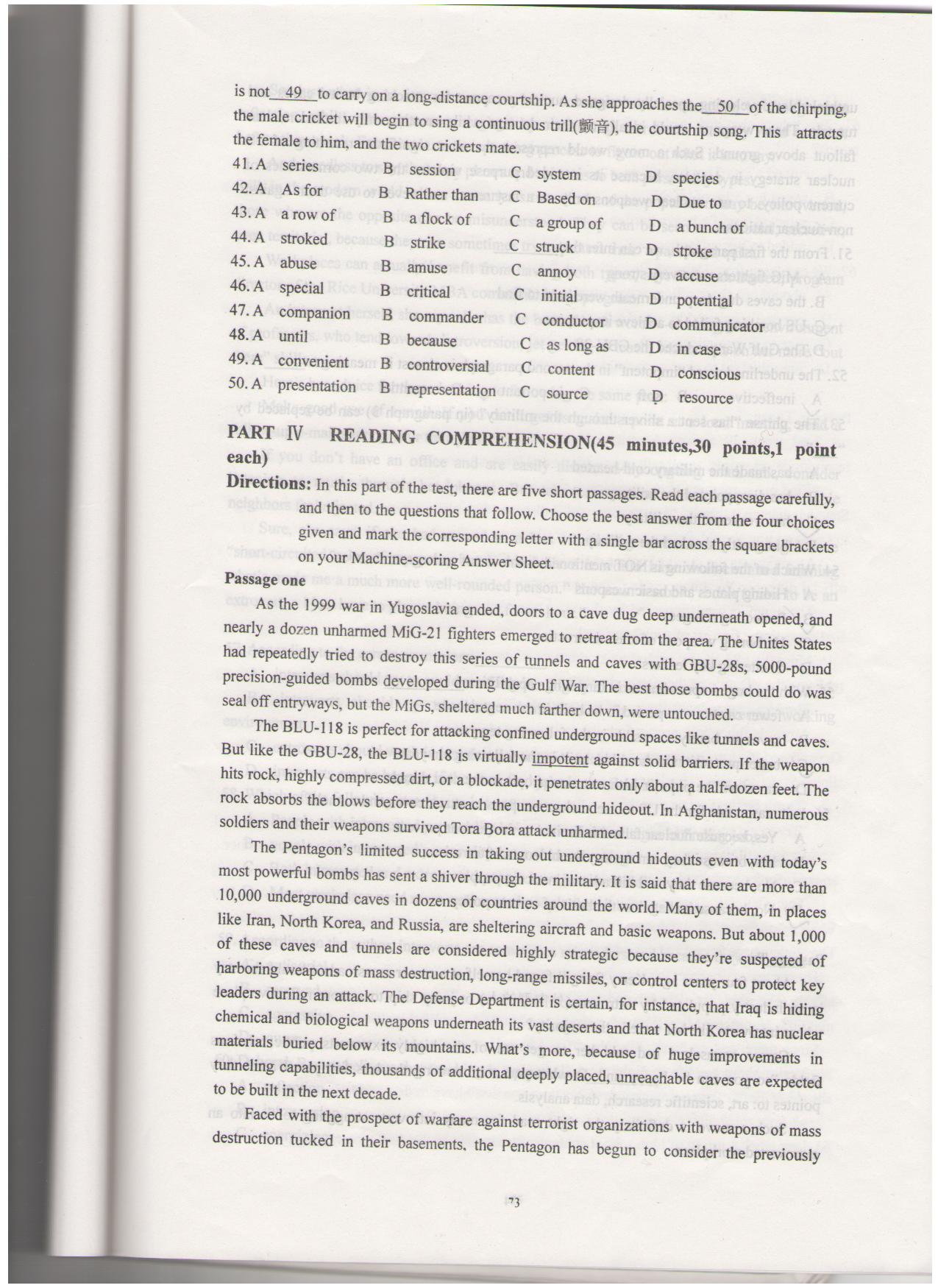 【试卷资源】研究生英语学位考试模拟试题集(中南大学)