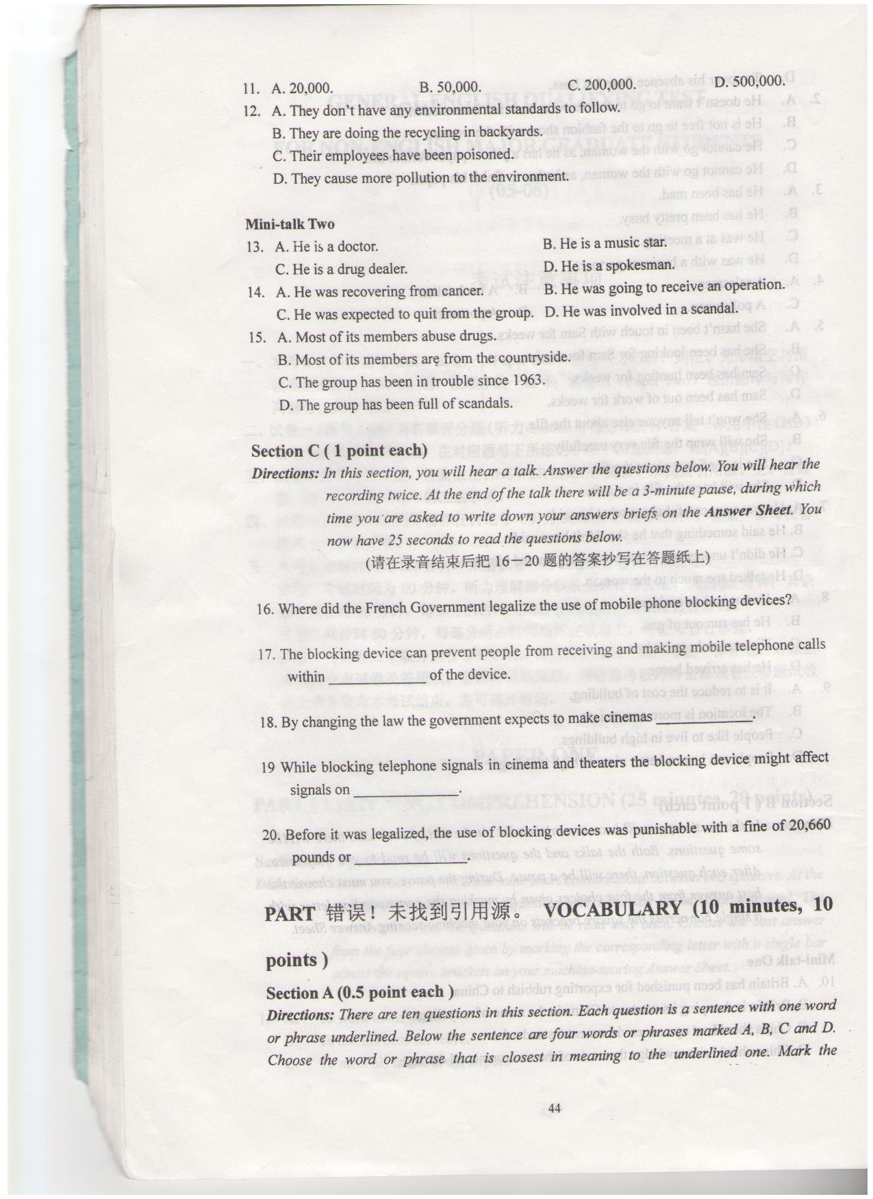 研究生英语学位考试