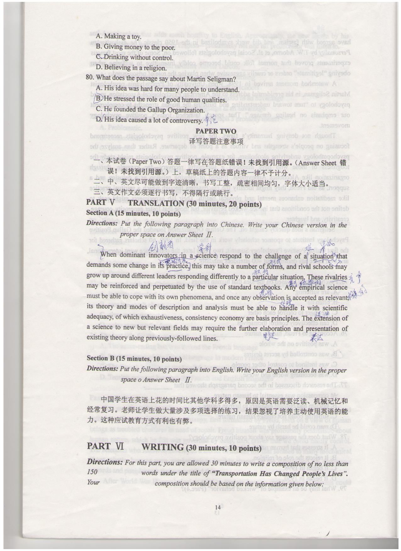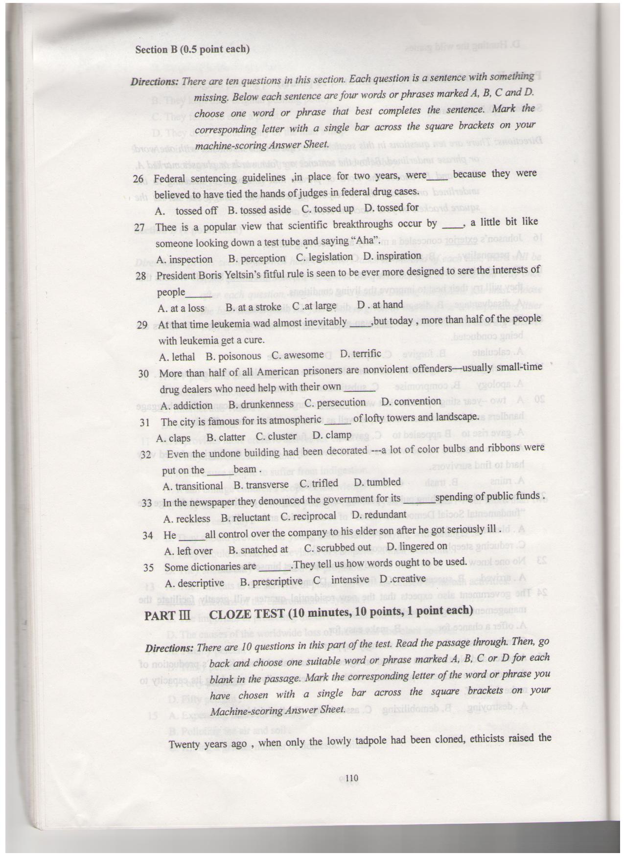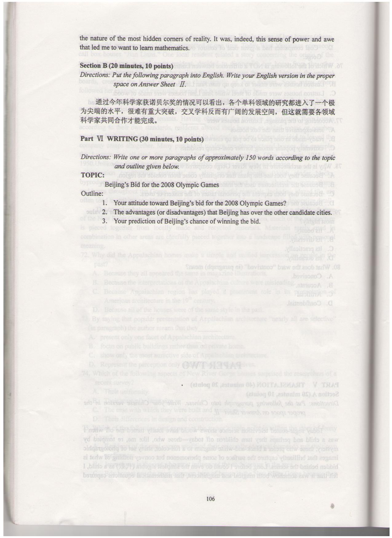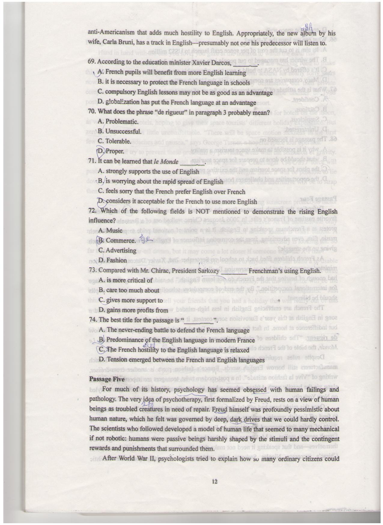 2010年和2012年西南大学考博英语真题