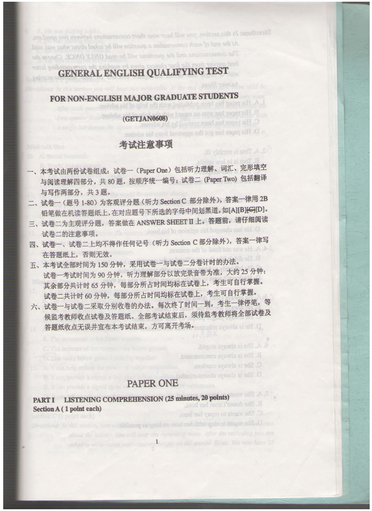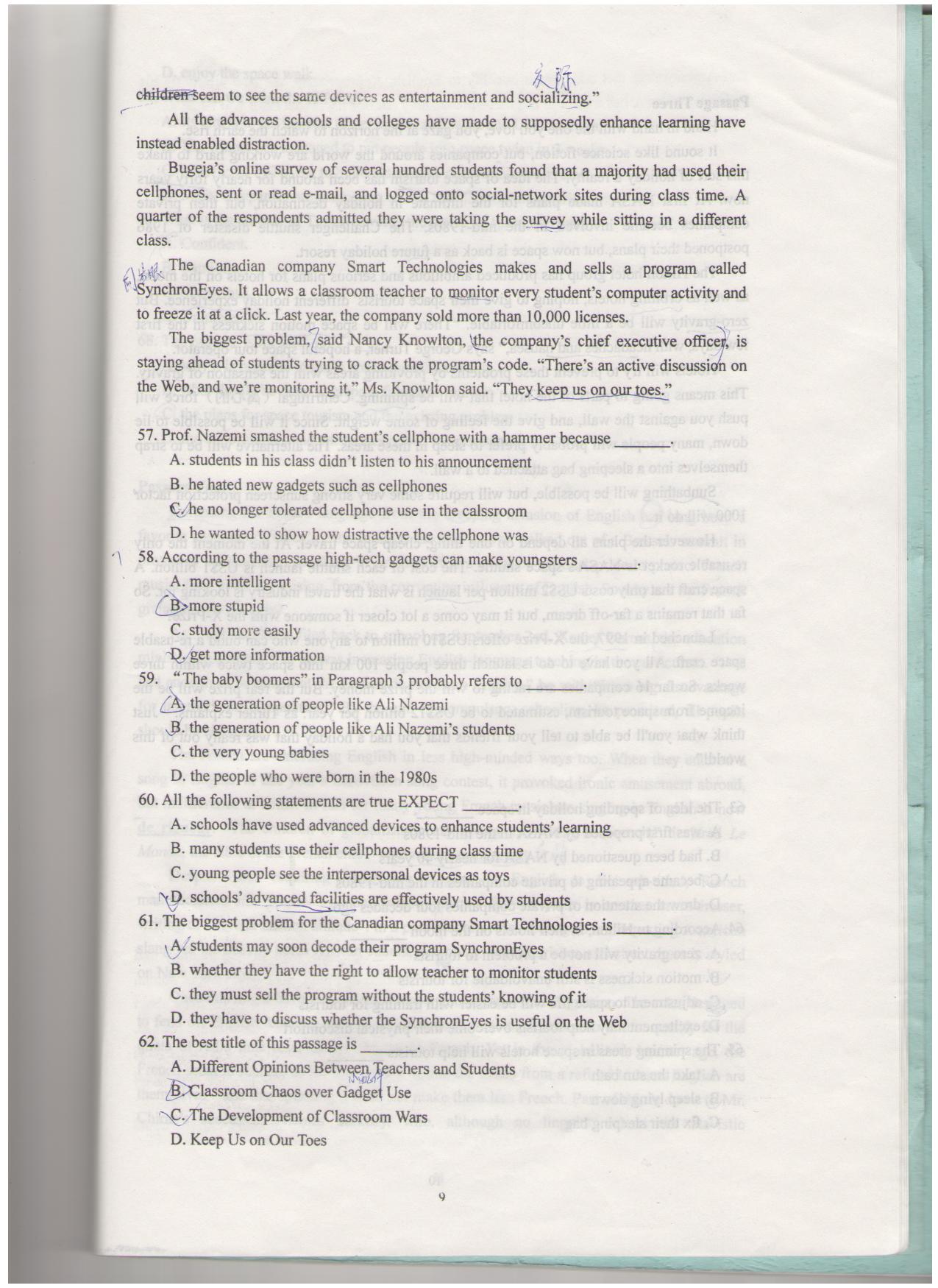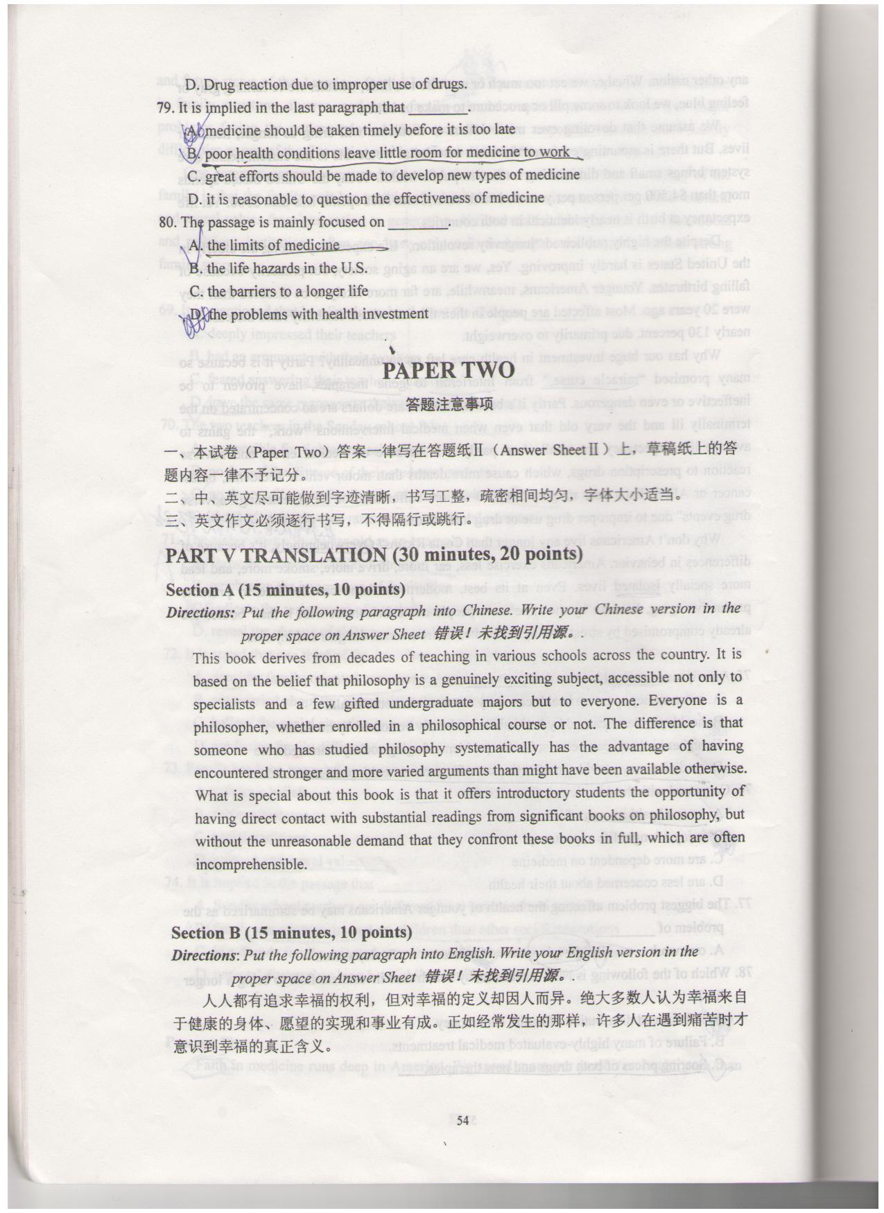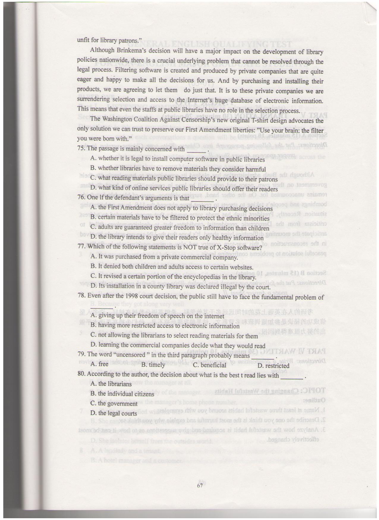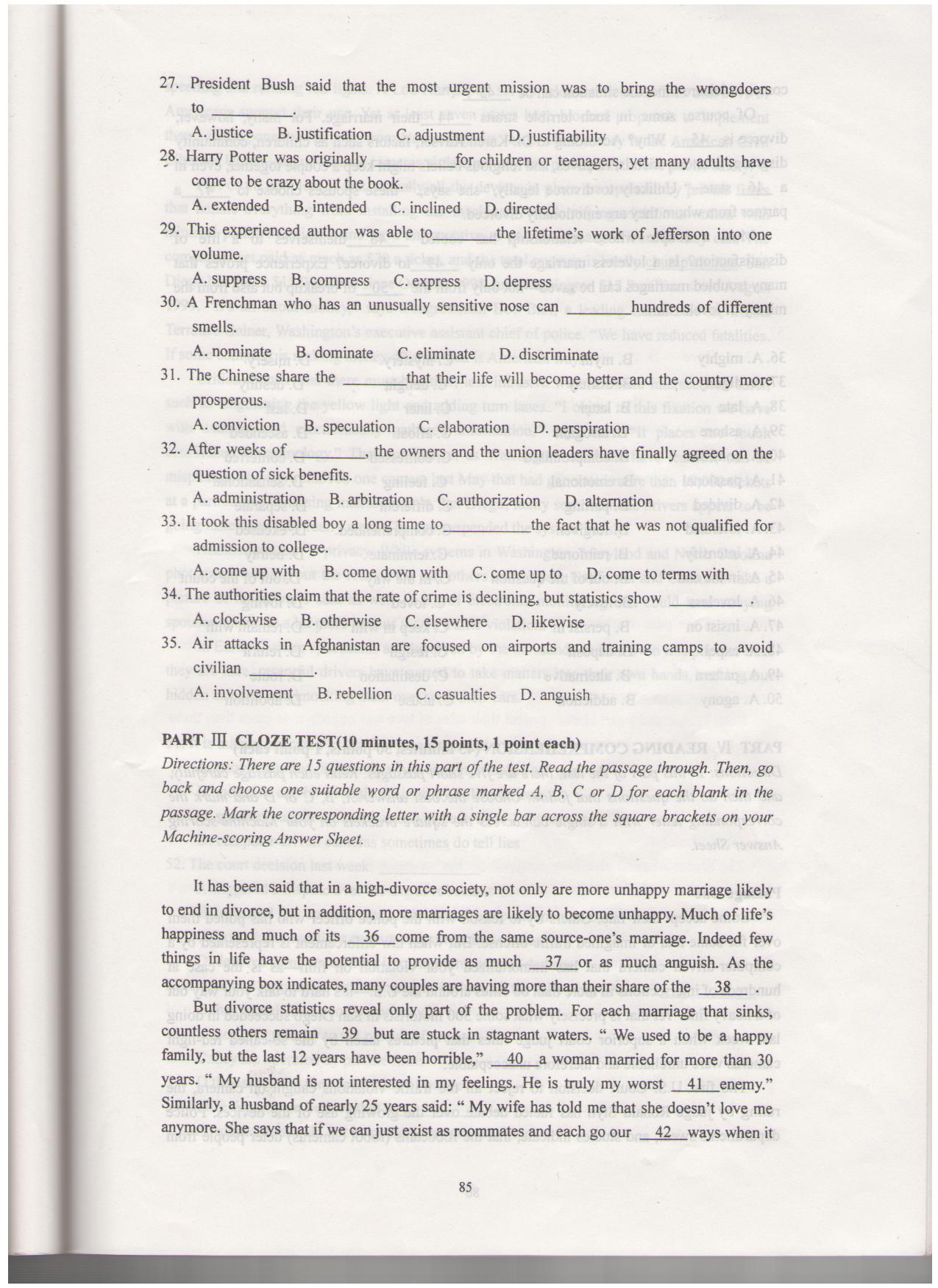 02-09年研究生学位英语考试真题+答案