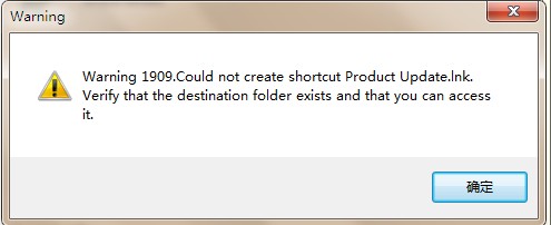 warning1909,could notcreate shotcut product update,lnk。verify that destination exists and that youcanaccess it。