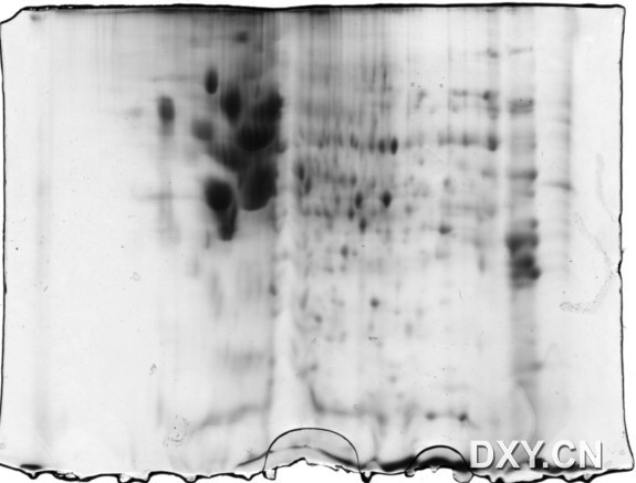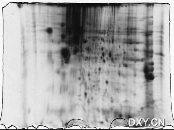 肿瘤细胞 收集细胞,离心,加入裂解液冰中裂解,超声,加入核酸酶,提取30min,-20度丙酮沉淀 过夜,20000转离心0.5h,裂解液复溶,40000转超离0.5h,上样。 胶条:7cm,PH 3-10,搭盐桥。 上样量200 ?g,130 ?l 第一向条件: 水化12 h(18℃)主动水化(50V) S1 250V线性30 min S2 1000V快速 1h 30 min S3 4000V线性3 h S4 4000V快速19000伏小时 第二向条件:80 V 10 min ,120 V 1 h50min |