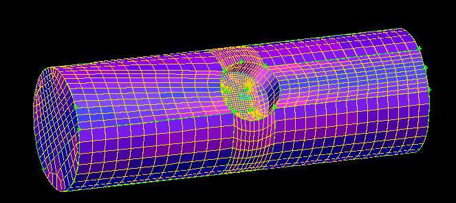 一细圆管伸进一粗圆筒中(如图1),从粗圆筒中subtract细圆管(图2),如何对圆筒中subtract细圆管后剩余部分(图2)生成网格??