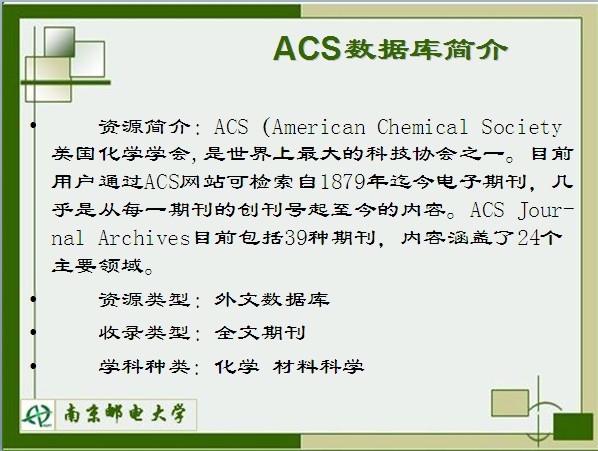 【课件】ACS美国化学学会全文数据库(南京邮电大学)