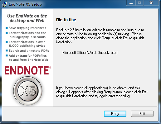 EndNote X5安装 出现下图 怎么回事