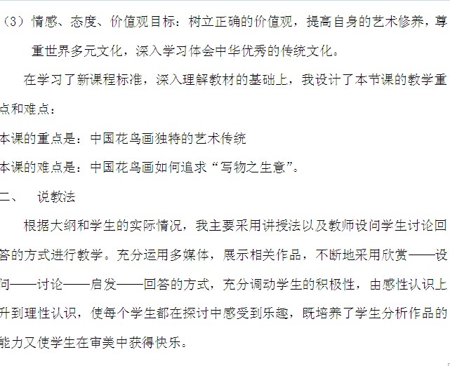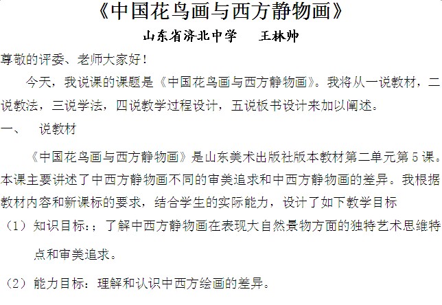 【教案】中国花鸟画与西方静物画说课稿