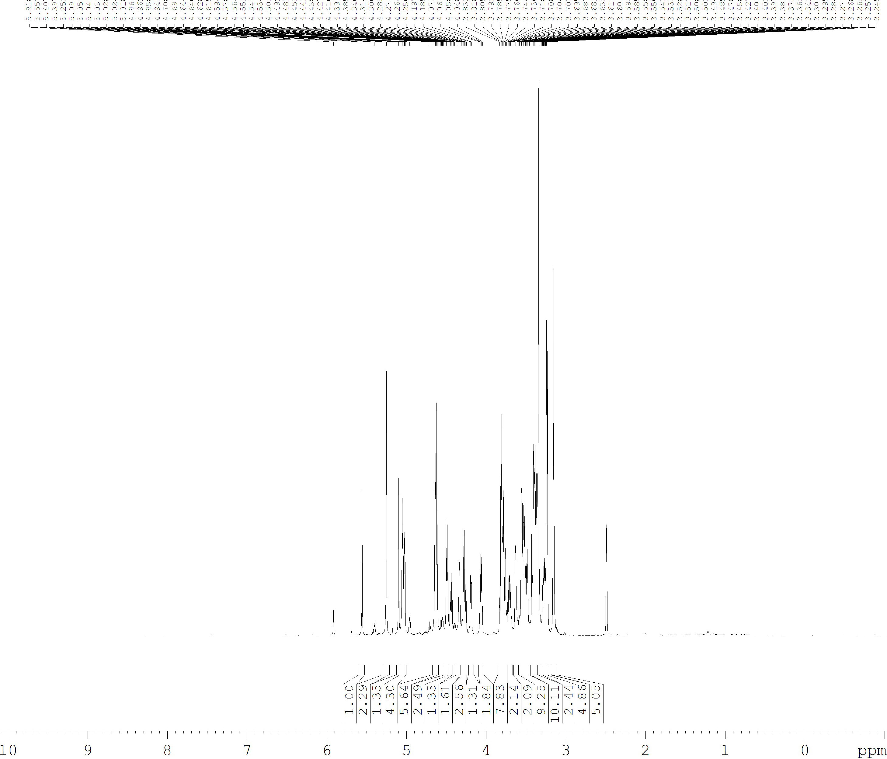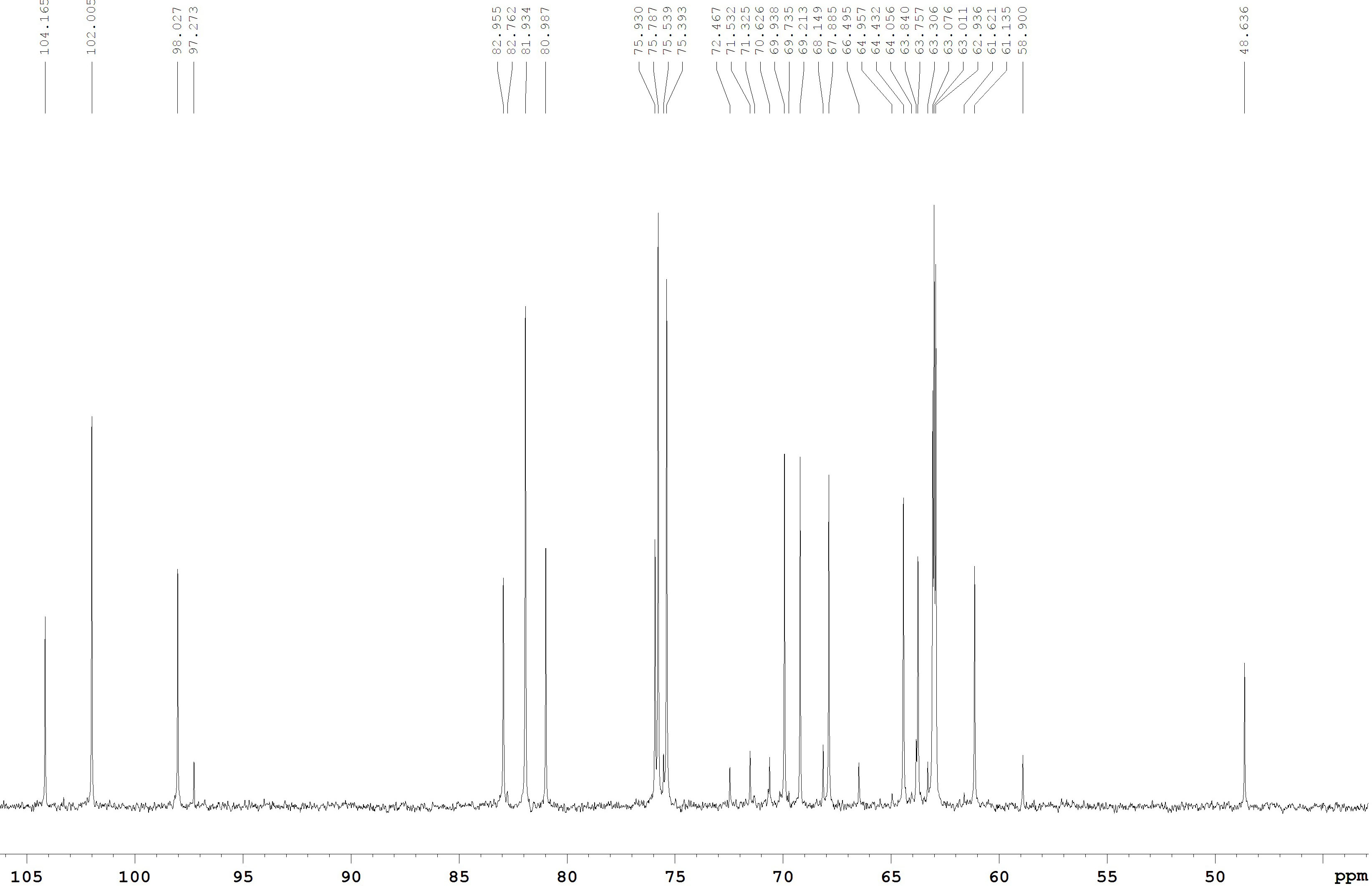 最近看了些糖的综述类文章。也简单做了点实验。我感觉植物体内的五糖都可以往麦芽糖的结构上想。换句话说,十有八九都是麦芽五糖。你可以找找麦芽五糖的核磁数据对对。 如果你有高分辨质谱的话,也可以做个试试,得出的数据同网上一些数据库比对一下。 虽然五个糖的寡糖有着多种的结构。但是你从植物体内生物合成的途径想想,五糖的结构其实没那么复杂。自然界中糖都是以最稳定的优势构象存在。 |
