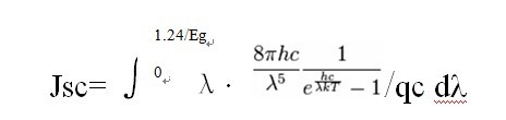 有谁利用过普朗克黑体辐射公式来计算太阳能电池短路电流密度的?为什么我用Matlab积分不出来呢?见下图积分公式,请教高手解决。 其中0是积分下限,1.24/Eg是上限。 [ Last edited by 玉面小飞龙 on 2012-3-20 at 22:29 ] |