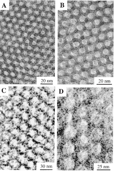 请教下面两组图,什么位置的算是材料的孔道和孔壁,是明亮的位置呢,还是一道一道的较暗位置?请指教 |