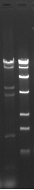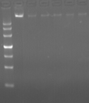 为什么我用20ul体系酶切基因组切不开,酶切体系:ddH2O ;基因组1.5-2ul(OD比为1.85,纯度应该没问题);10*H缓冲液 2ul;酶 0.4ul。酶切时间梯度6、7、8、9、10小时,结果仍然切不开基因组,请高手帮帮忙,不胜感激!![]() |